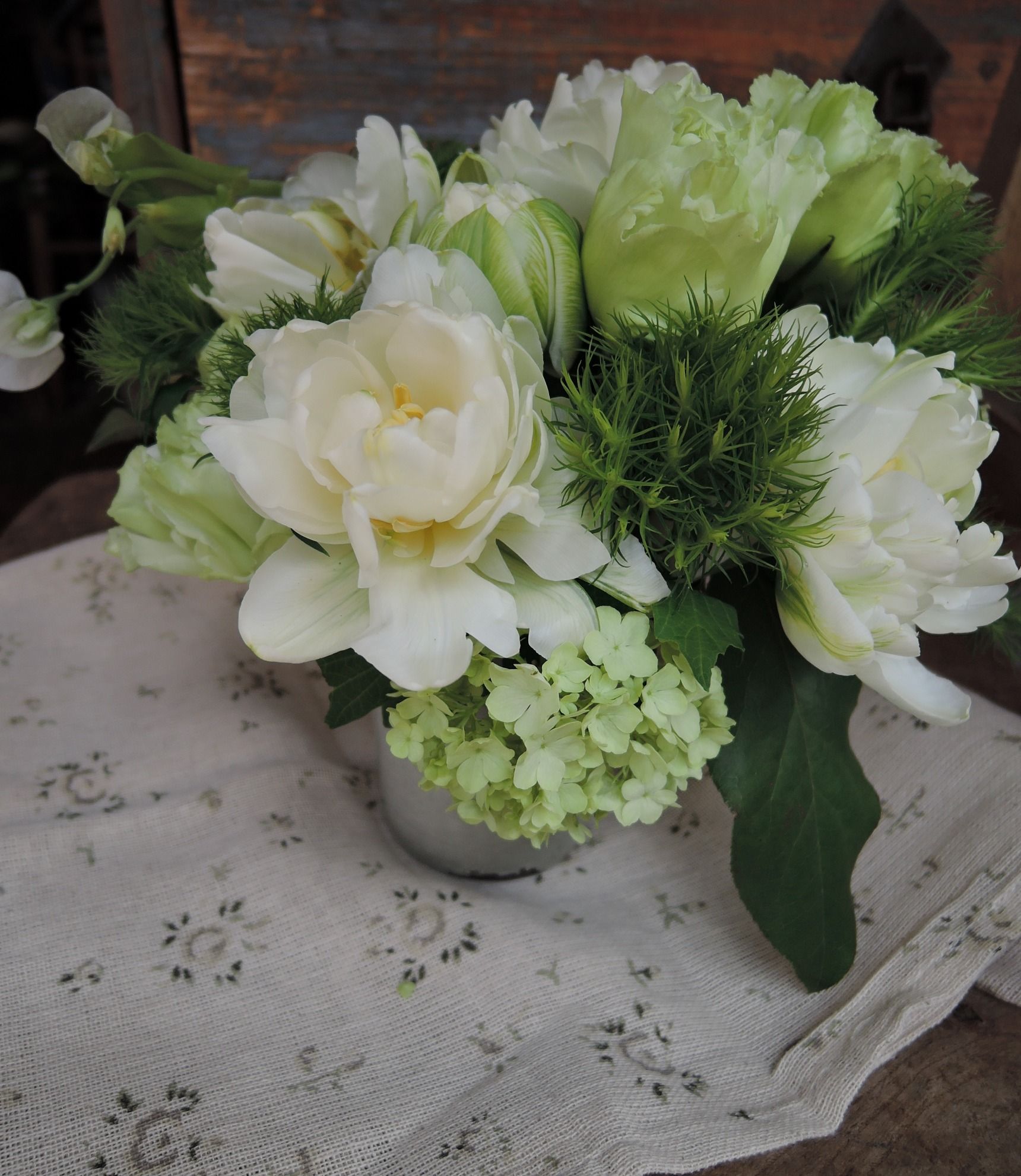 レッスンのひととき 八重咲き白チューリップ シルバーリーフ お花で毎日をちょっと楽しく